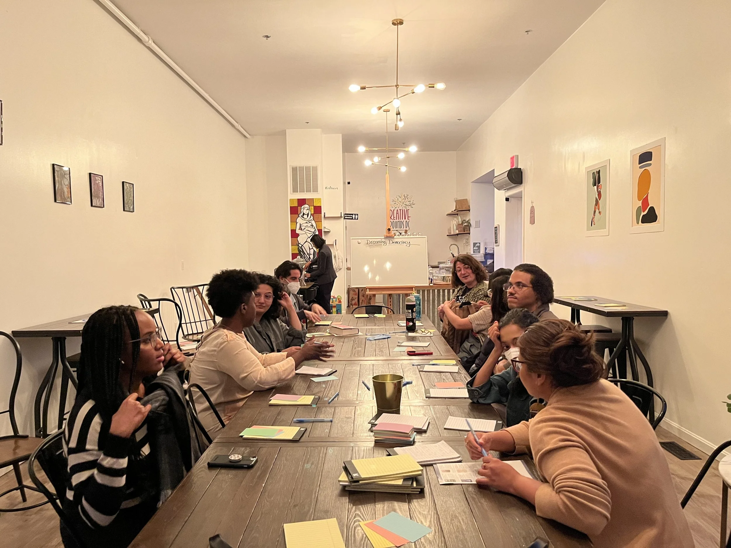 We host reading groups and discussions about the value of real political parties and the need for structural change.